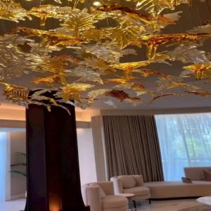 Art glass maple leaf pendant, suitable for air hotels, clubhouses, creative tree leaf glass ornaments, restaurant wedding decorations.